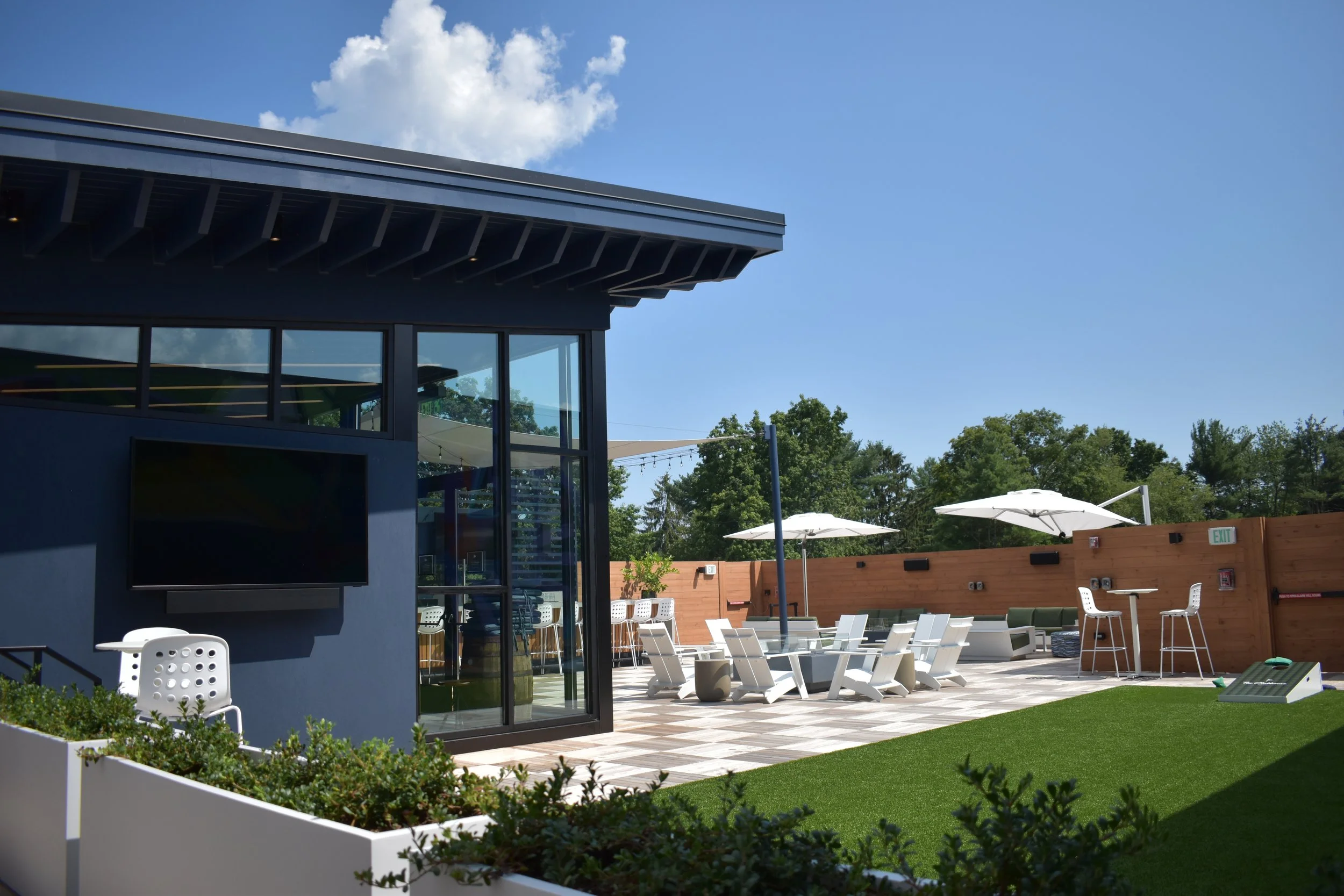 An existing 29,000 SF multi-tenant commercial building on a prominent 3-acre Post Road parcel in Westport, CT, was revitalized to house The Clubhouse, a new hospitality space serving the community, alongside an established retail tenant that has operated for 25 years. Tim and Emily Zobl, operators of The Clubhouse and family owners of the property, saw an opportunity to reinvigorate the property and create a family-focused destination in their hometown, despite its poor condition at the time of purchase. They valued not only the property’s prime location but also the potential to enhance the streetscape and boost the local economy through their efforts.